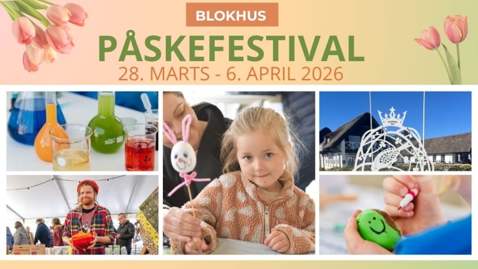 Fra lørdag den 28. marts til mandag den 6. april springer Blokhus Påskefestival 2026 ud i fuldt flor. Destination Blokhus inviterer til mere end 100 aktiviteter fordelt over 10 dage – fra kreative workshops og mysterier til action, shows og forkælelse.