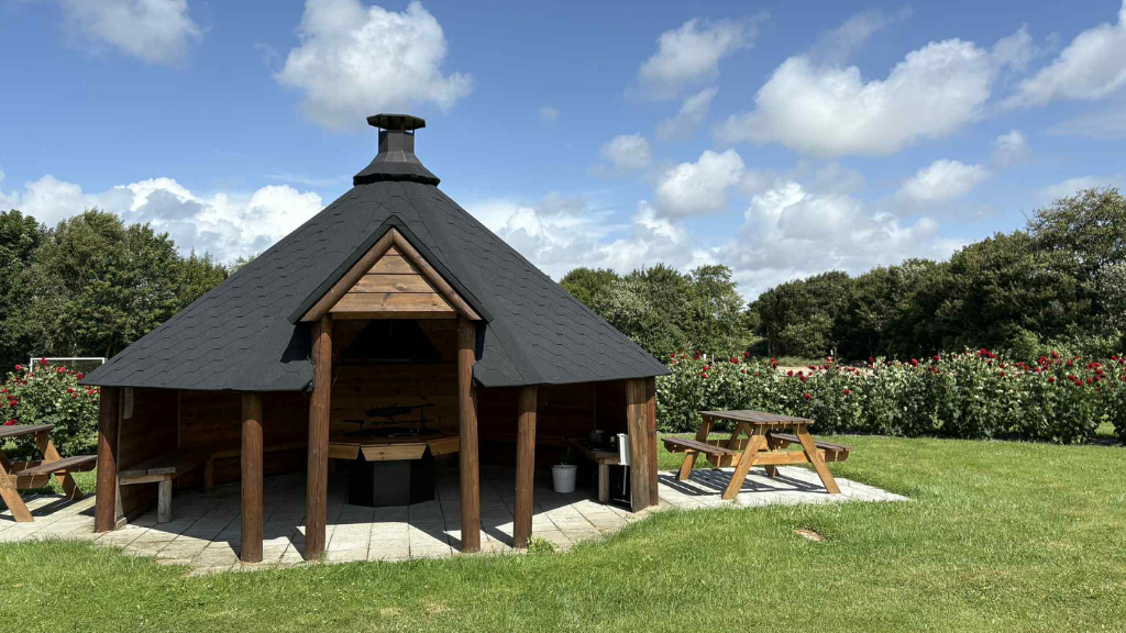 Den hyggelige grillhytte – du kan købe kul på stedet og sidde i læ og nyde bålet