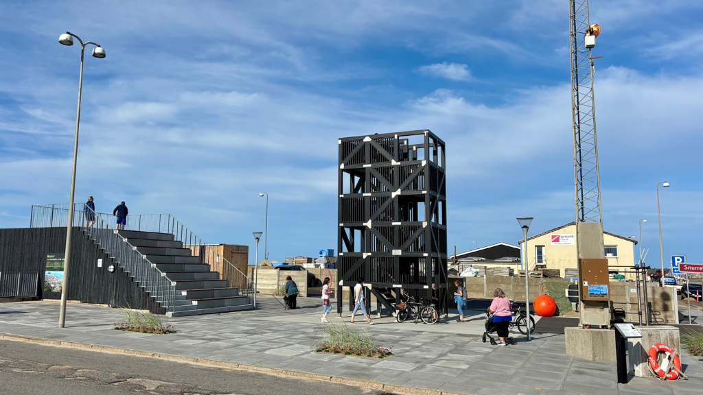 Det sorte Tårn anno 2025 er et markant pejlemærke med arkitektoniske referencer til Hirtshals' fortid. Nu i en moderne udgave, som en del af et nyt oplevelses- og aktivitetsspot, der kombinerer historie, kultur og rekreative muligheder.
