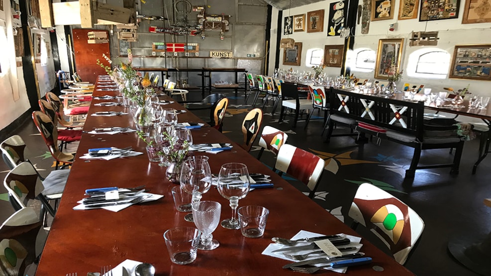 Salonen har åbent fra kl 17, til de gæster som vil nyde et glas og se på kunst.