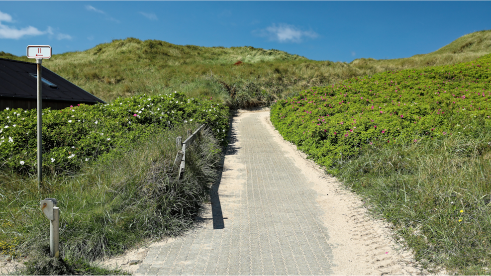 I sommerhus området i Vrist fører en sti direkte ned til stranden og giver nem adgang til Vesterhavet.